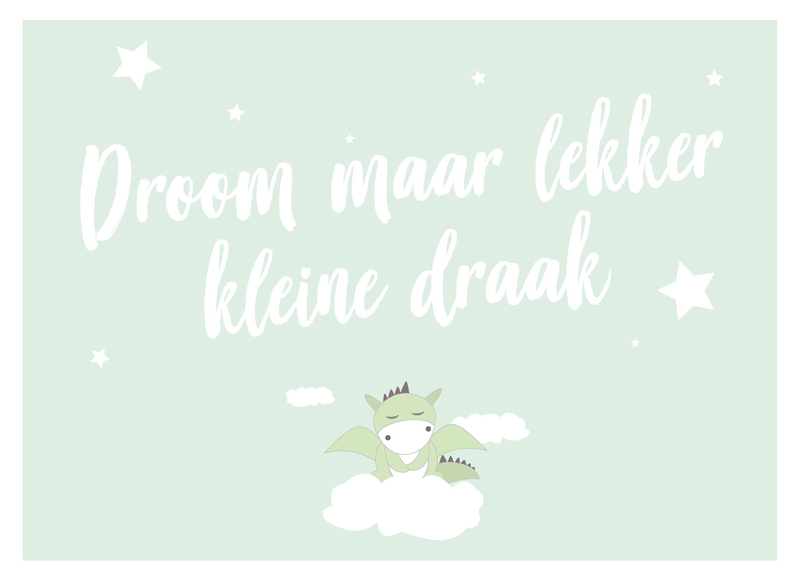 Droom maar lekker kleine draak…. Super leuk om op de kamer te hangen. 42 x 29,7 cm.