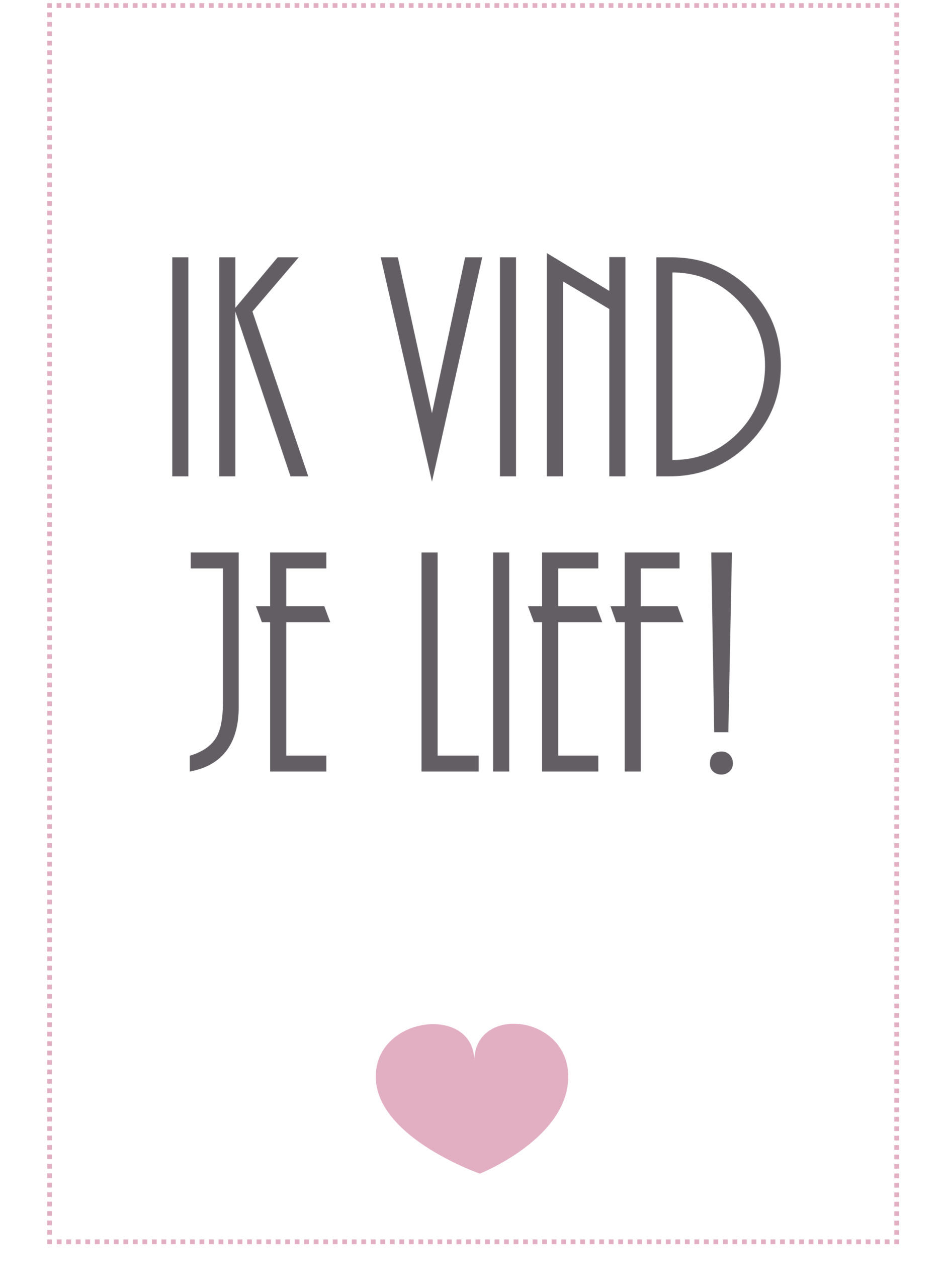roze wit grijs. ook verkrijgbaar met een versje i.p.v. in vind je lief